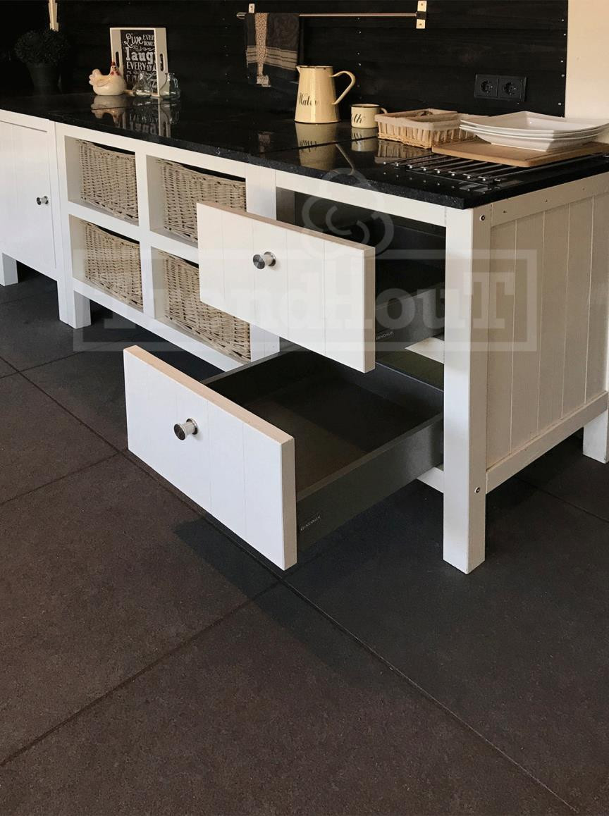 Maak uw buitenkeuken af met een granieten wasbak of een legplateau.