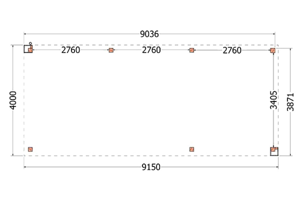 • Buitenverblijf Verona model rechts 9150x4000x2500mm (bxdxh)