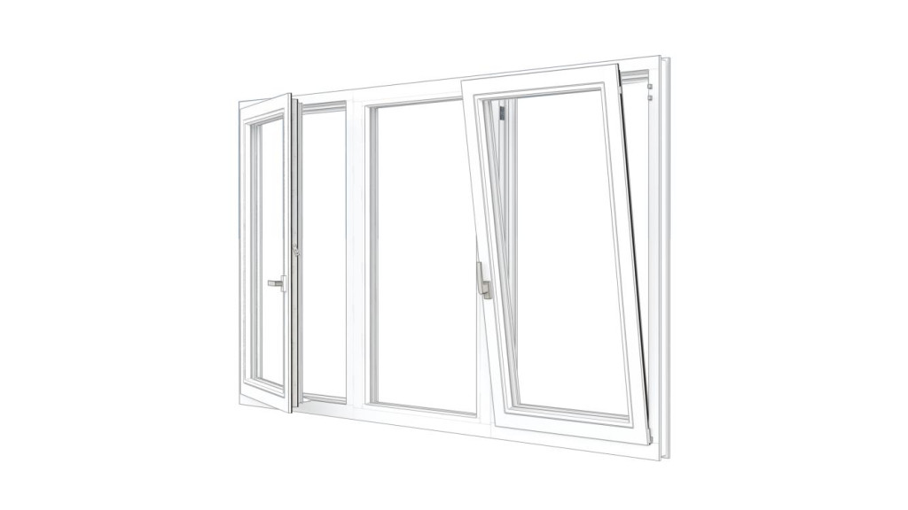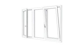 • Combinatieset Meranti raamkozijn 2322x1374 - Wit - draai/kiep (LD) + vast + draai/kiep (RD)
