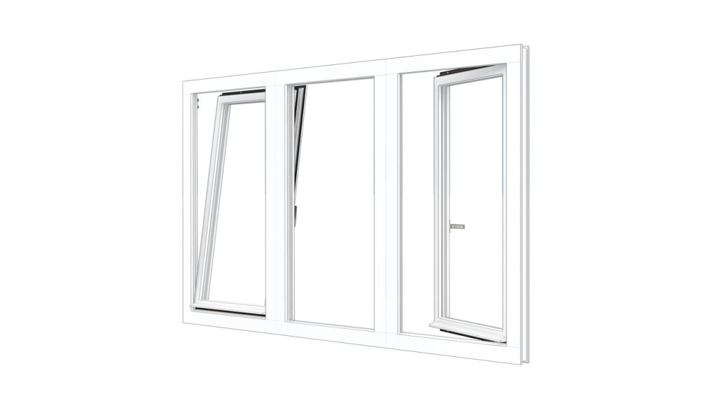 Combinatieset Meranti raamkozijn 2322x1374 - Wit - draai/kiep (LD) + vast + draai/kiep (RD)