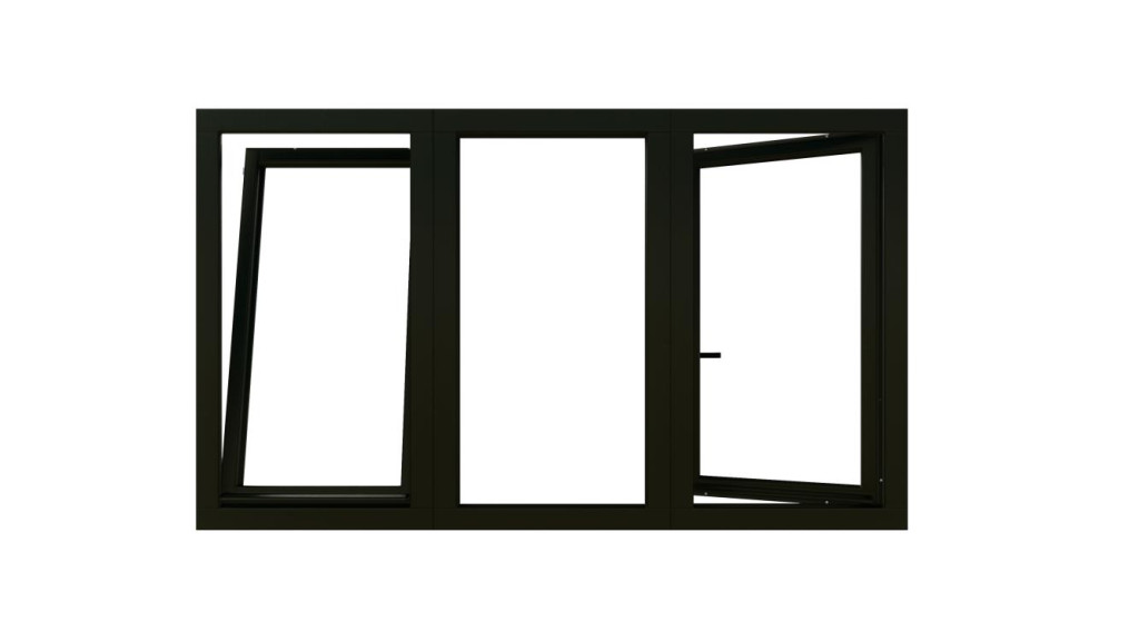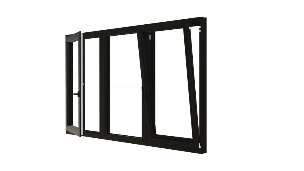 Combinatieset Meranti raamkozijn 2322x1374 - Zwart - draai/kiep (LD) + vast + draai/kiep (RD)