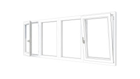 • Combinatieset Meranti raamkozijn 3096x1074 - Wit - draai/kiep (LD) + 2x vast + draai/kiep (RD)
