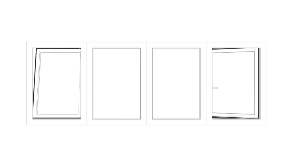 Combinatieset Meranti raamkozijn 3096x1074 - Wit - draai/kiep (LD) + 2x vast + draai/kiep (RD)