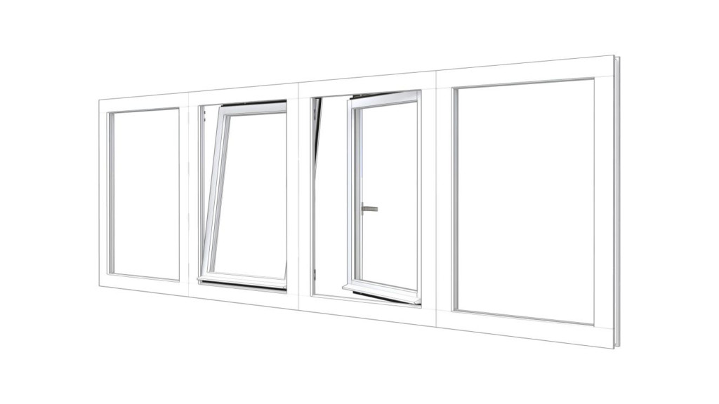 Combinatieset Meranti raamkozijn 3096x1074 - Wit - vast + 2x draai/kiep (LD+RD) + vast