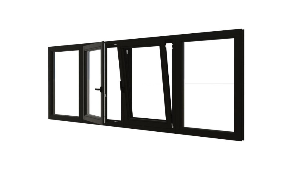• Combinatieset Meranti raamkozijn 3096x1074 - Zwart - vast + 2x draai/kiep (LD+RD) + vast
