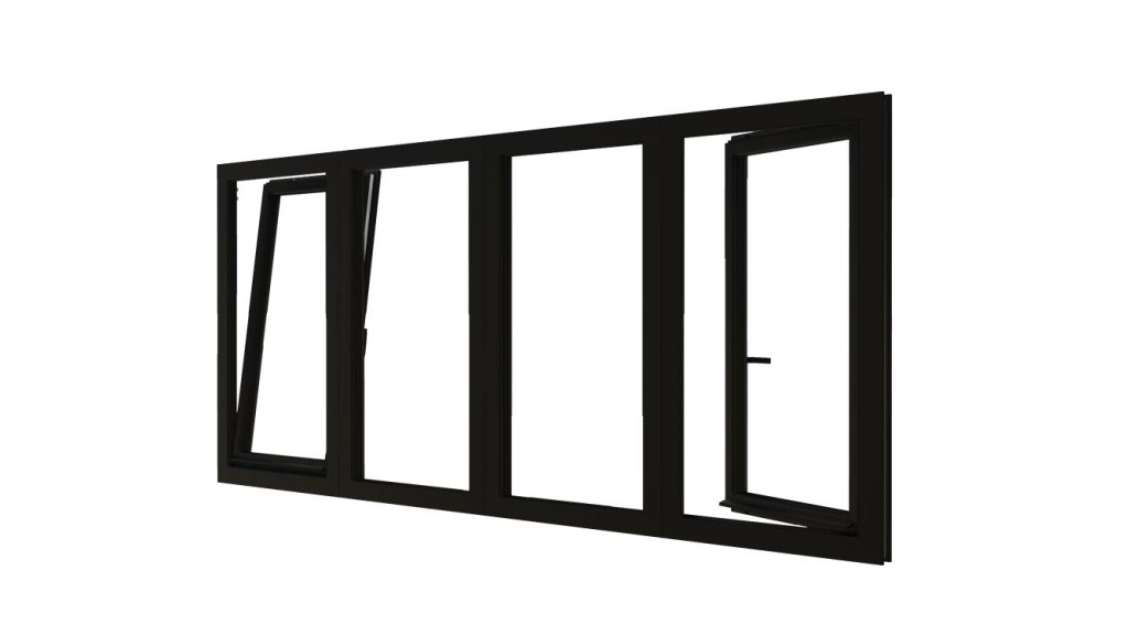 Combinatieset Meranti raamkozijn 3096x1374 - Zwart - draai/kiep (LD) + 2x vast + draai/kiep (RD)