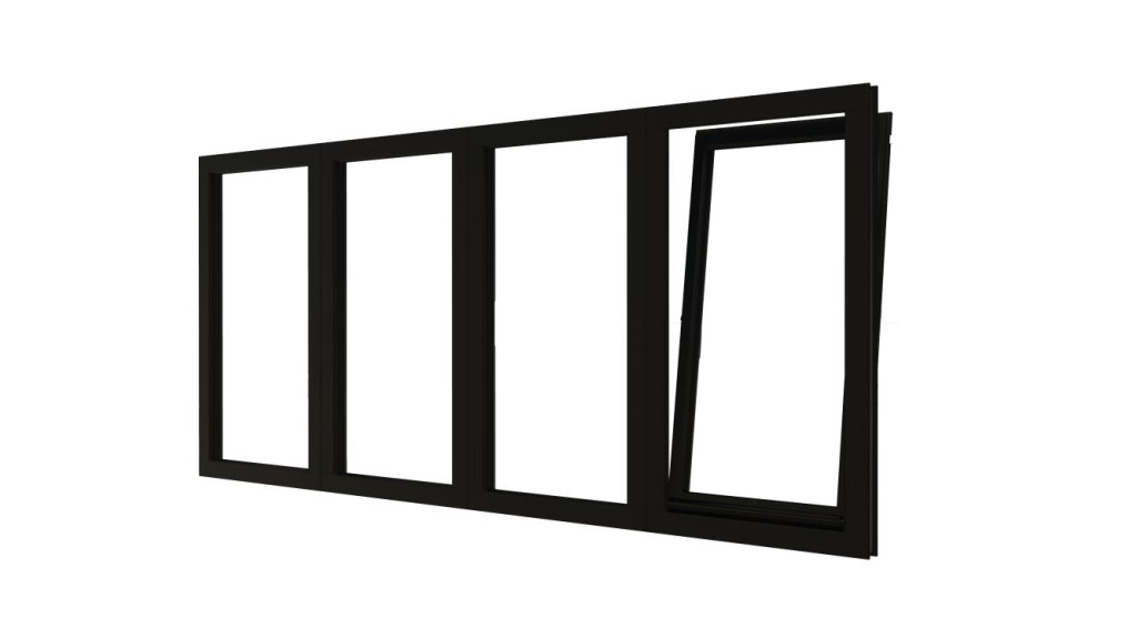 • Combinatieset Meranti raamkozijn 3096x1374 - Zwart - draai/kiep (LD) + 3x vast