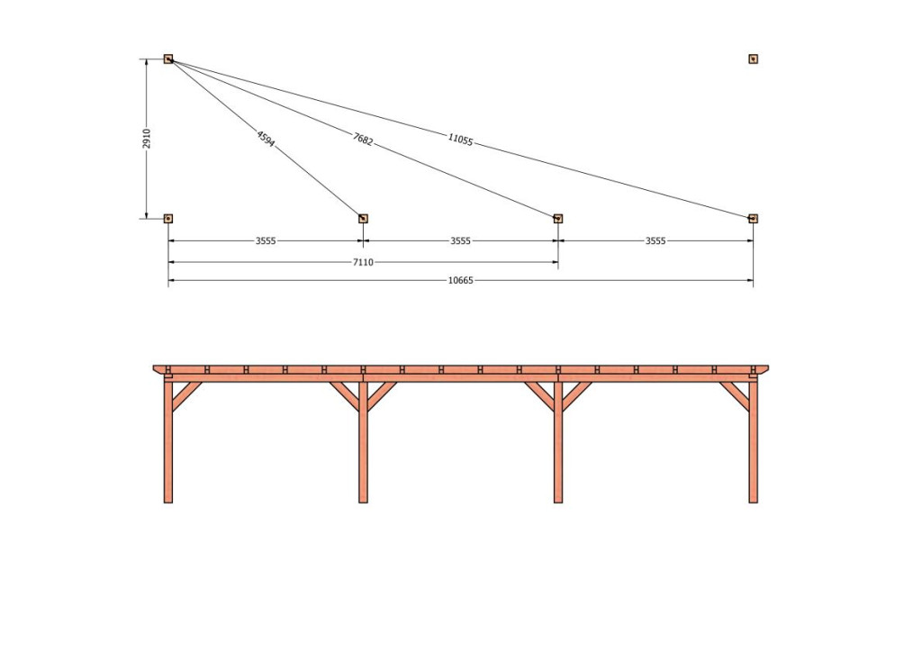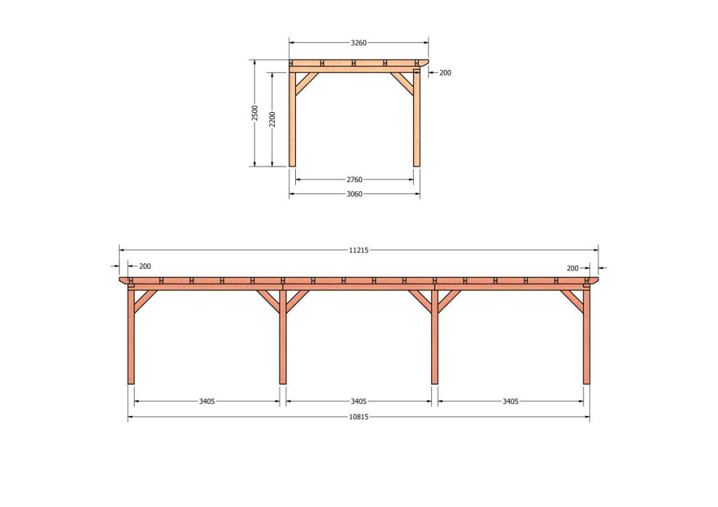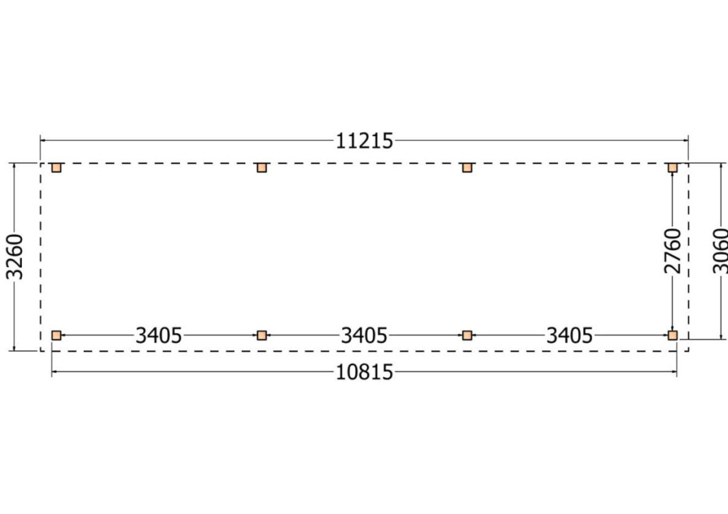 Constructiepakket aanbouwveranda | 11215x3260x2500mm | fijnbezaagd Douglas