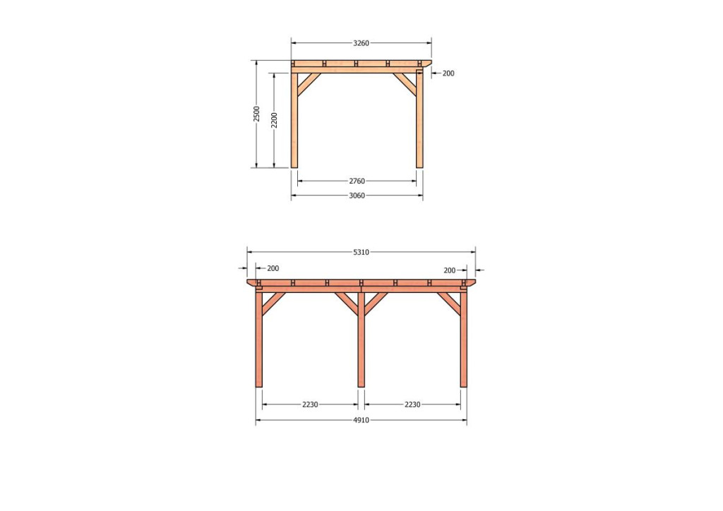 Constructiepakket aanbouwveranda | 5240x3260x2500mm rechts | fijnbezaagd Douglas