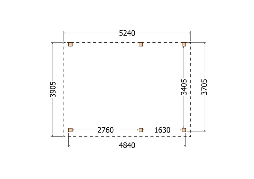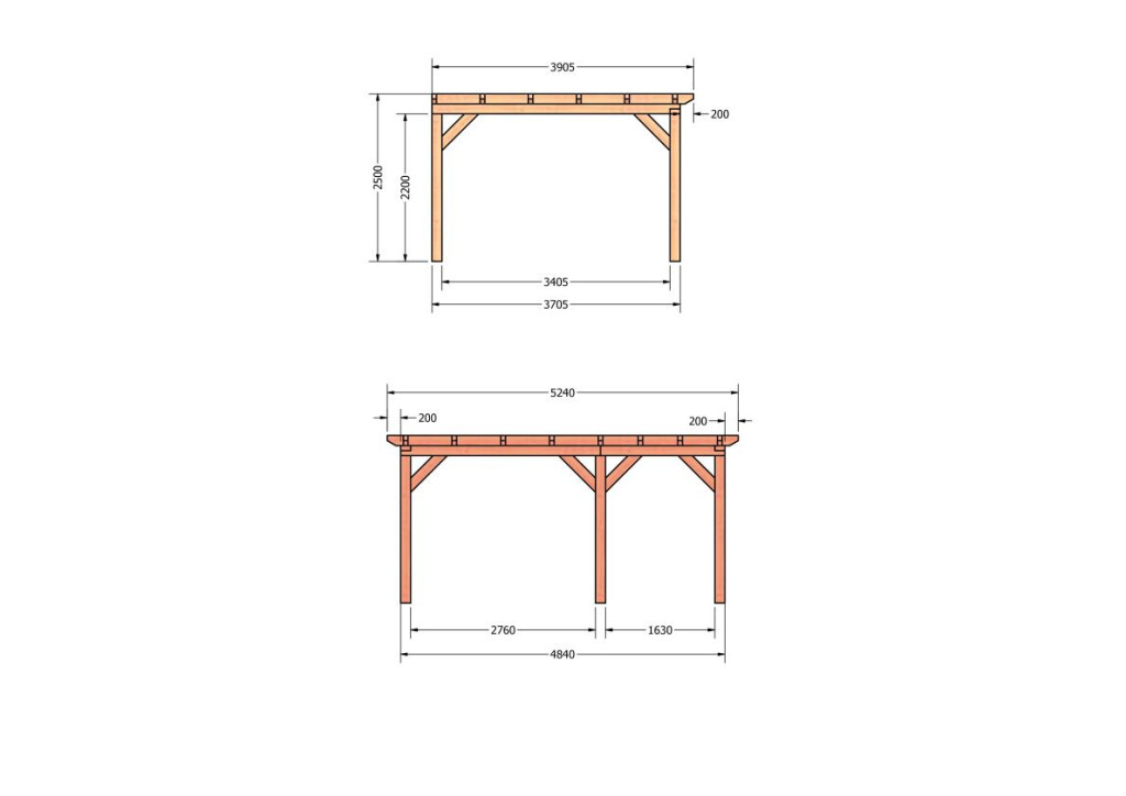 Constructiepakket aanbouwveranda | 5240x3905x2500mm rechts | fijnbezaagd Douglas