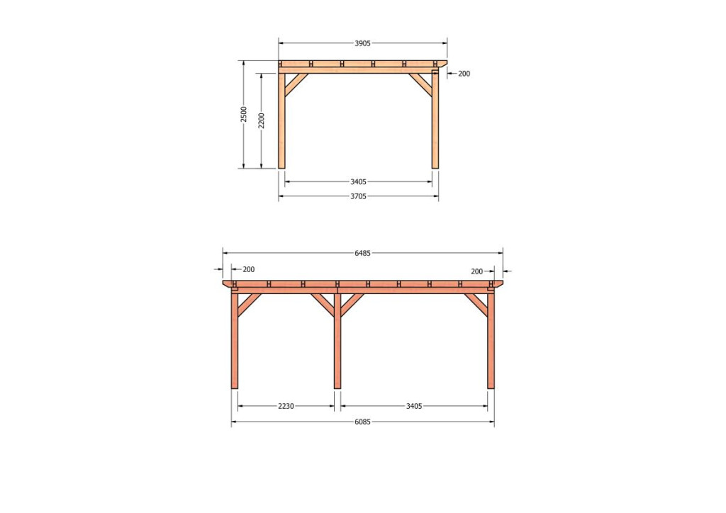 Constructiepakket aanbouwveranda | 6485x3905x2500mm links | fijnbezaagd Douglas