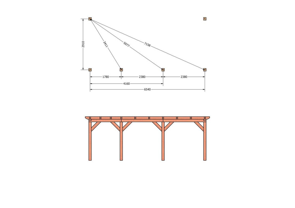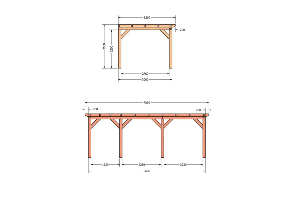 Constructiepakket aanbouwveranda | 7090x3260x2500mm links | fijnbezaagd Douglas