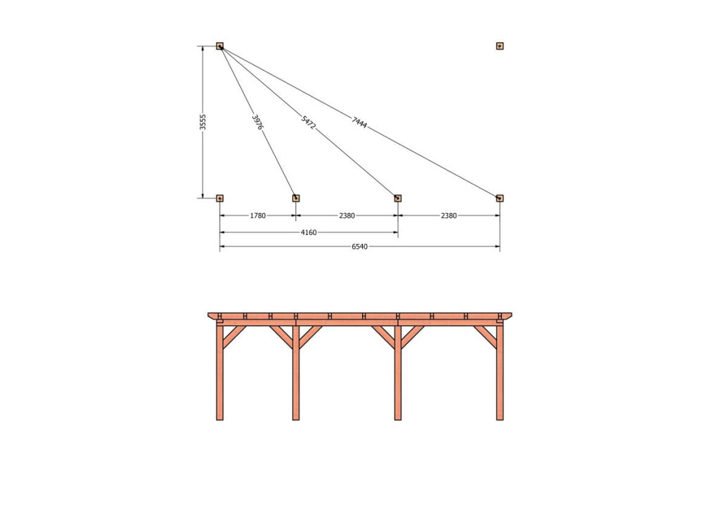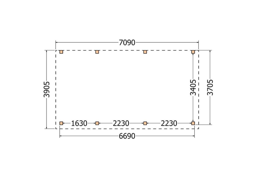 Constructiepakket aanbouwveranda | 7090x3905x2500mm links | fijnbezaagd Douglas