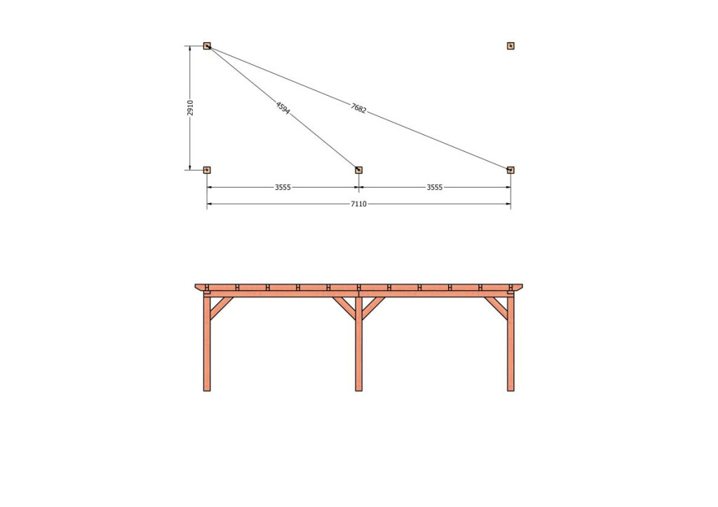 Constructiepakket aanbouwveranda | 7660x3260x2500mm | fijnbezaagd Douglas