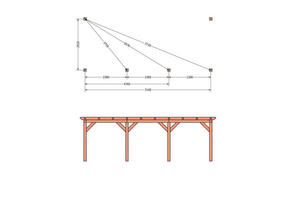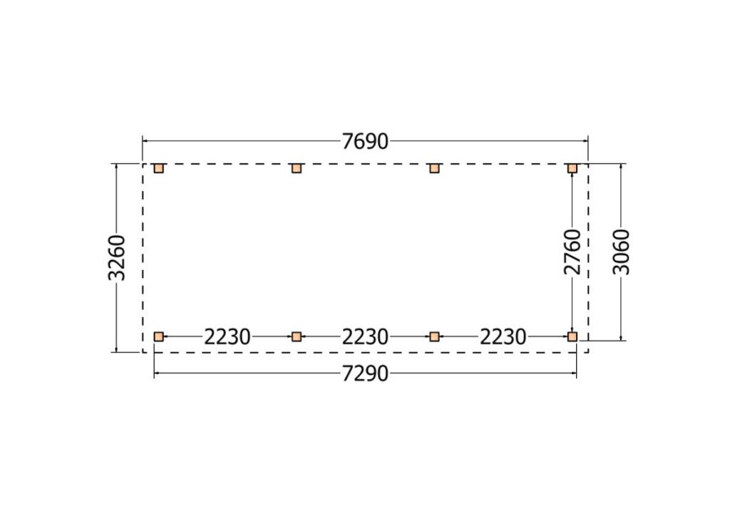Constructiepakket aanbouwveranda | 7690x3260x2500mm | fijnbezaagd Douglas