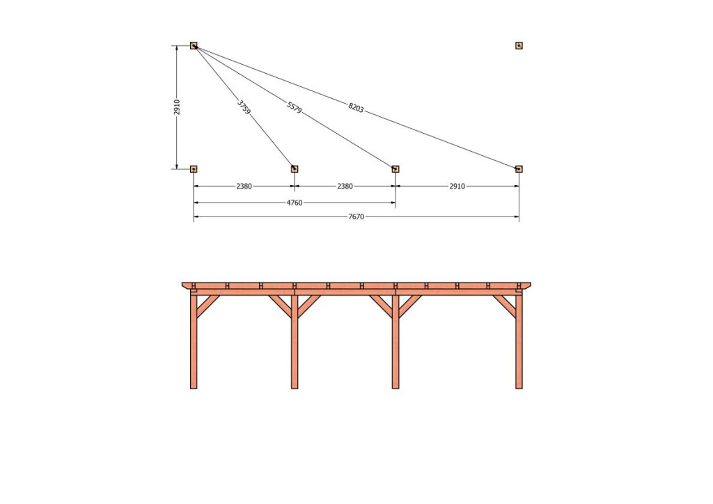 Constructiepakket aanbouwveranda | 8220x3260x2500mm rechts | fijnbezaagd Douglas