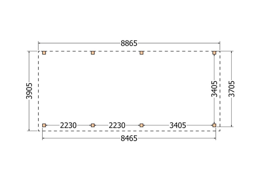 Constructiepakket aanbouwveranda | 8865x3905x2500mm rechts | fijnbezaagd Douglas