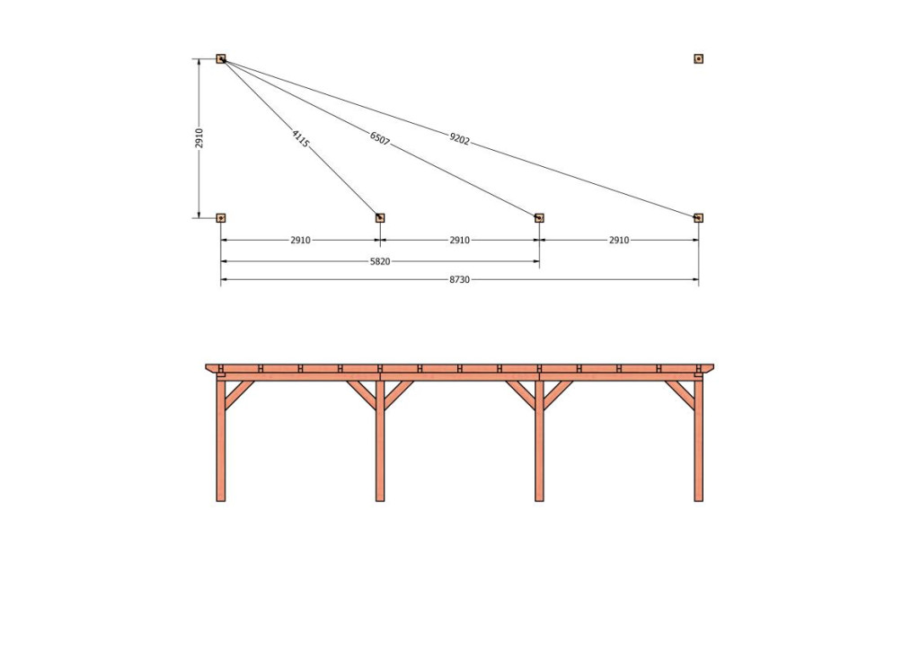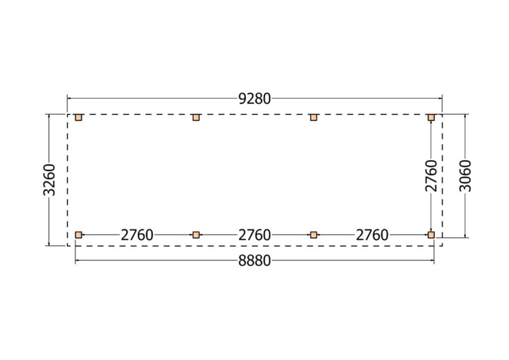 Constructiepakket aanbouwveranda | 9280x3260x2500mm | fijnbezaagd Douglas