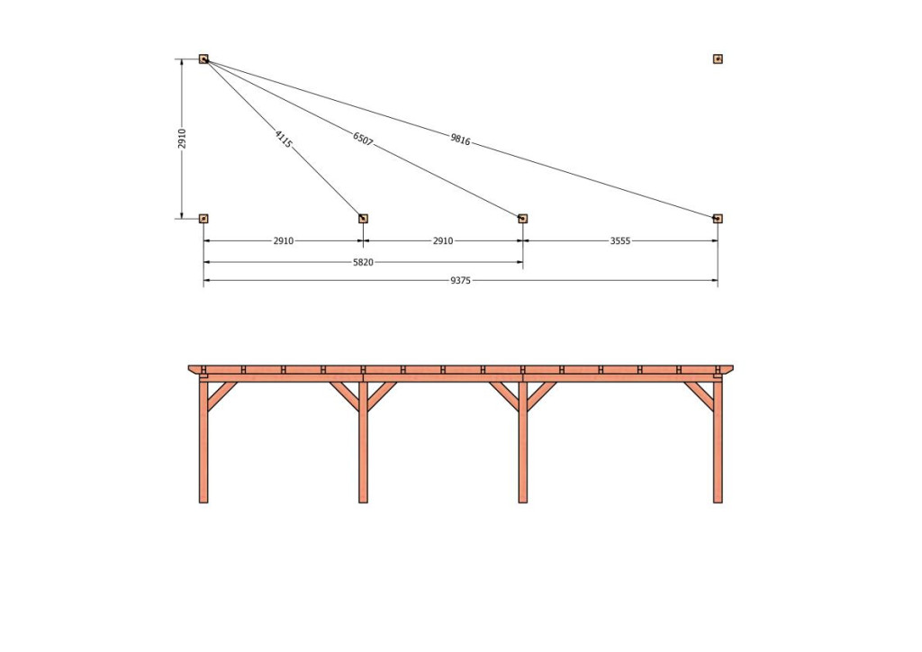 Constructiepakket aanbouwveranda | 9925x3260x2500mm rechts | fijnbezaagd Douglas