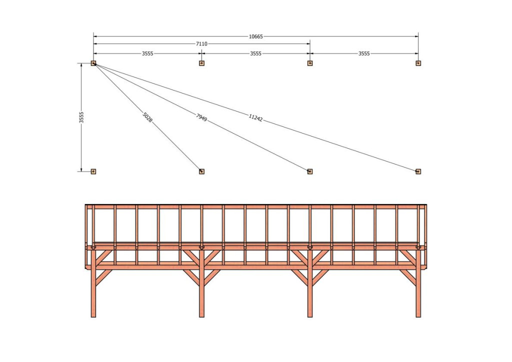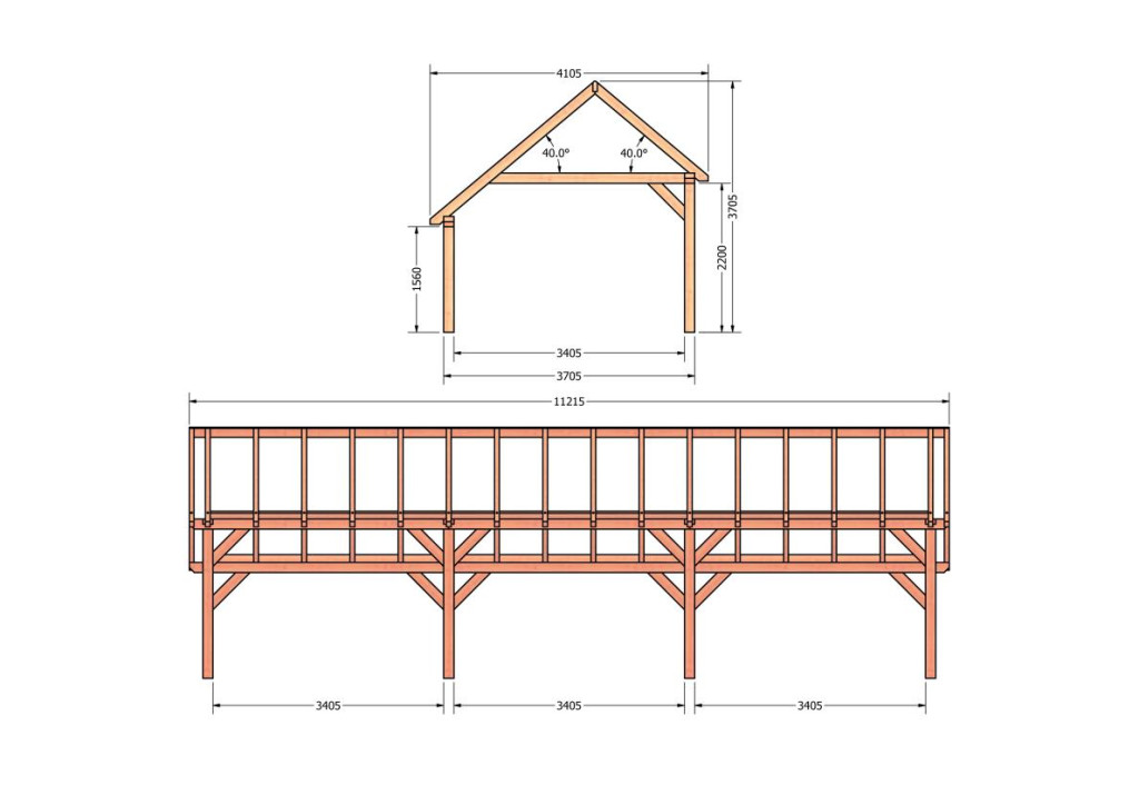 • Constructiepakket kapschuur | 11215x4105x3715mm | fijnbezaagd Douglas