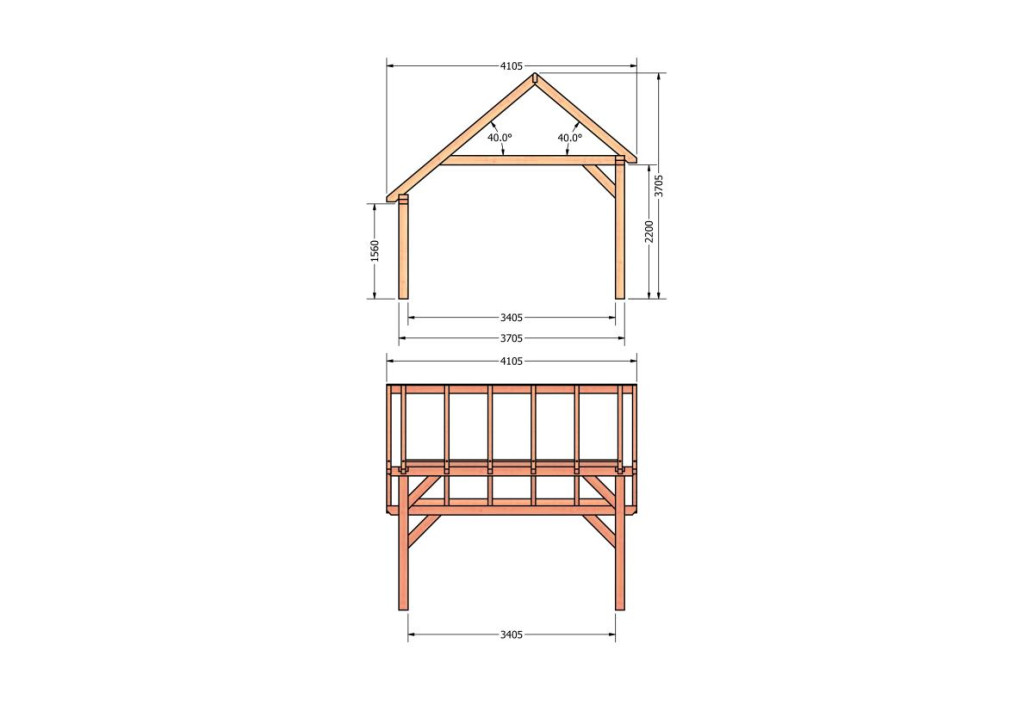 • Constructiepakket kapschuur | 4105x4105x3715mm | fijnbezaagd Douglas