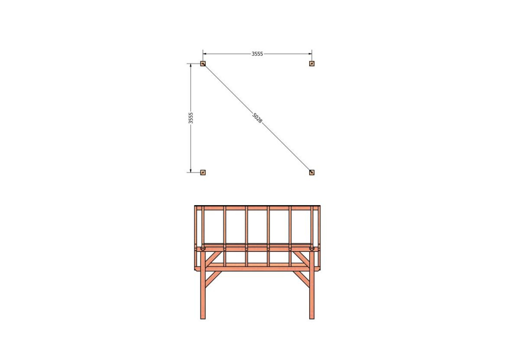 Constructiepakket kapschuur | 4105x4105x3715mm | fijnbezaagd Douglas