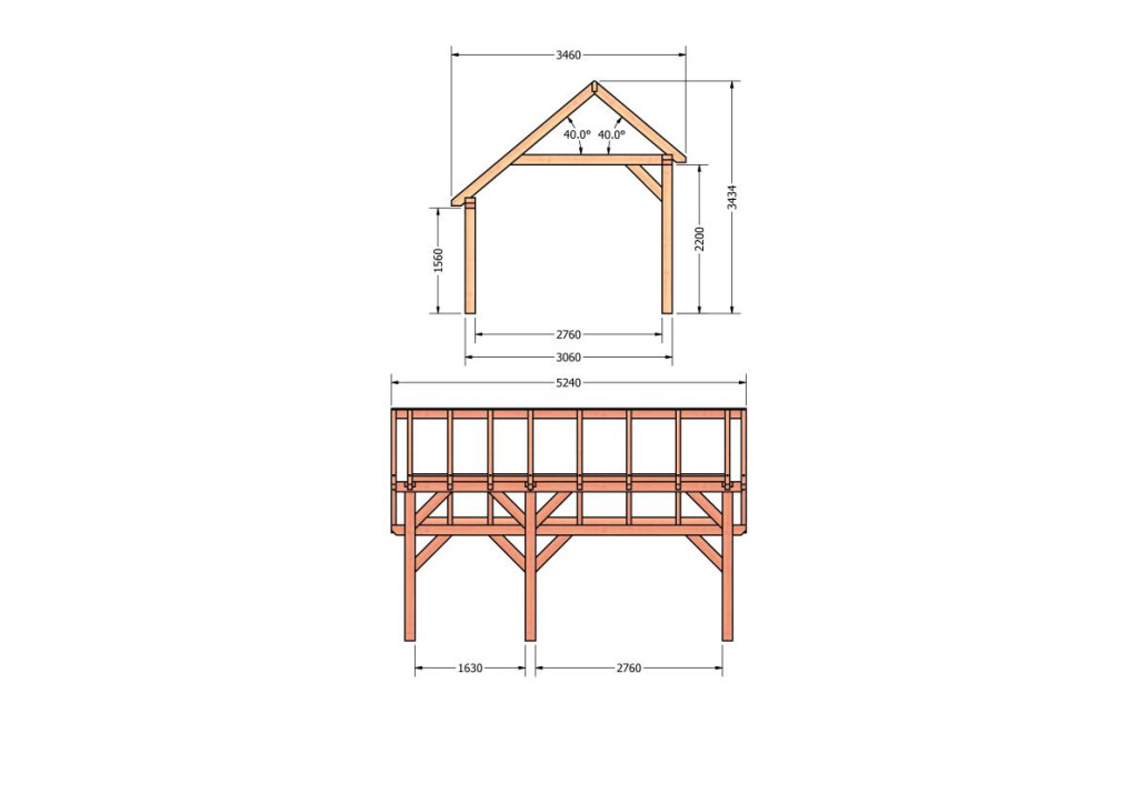 • Constructiepakket kapschuur | 5240x3460x3445mm | fijnbezaagd Douglas