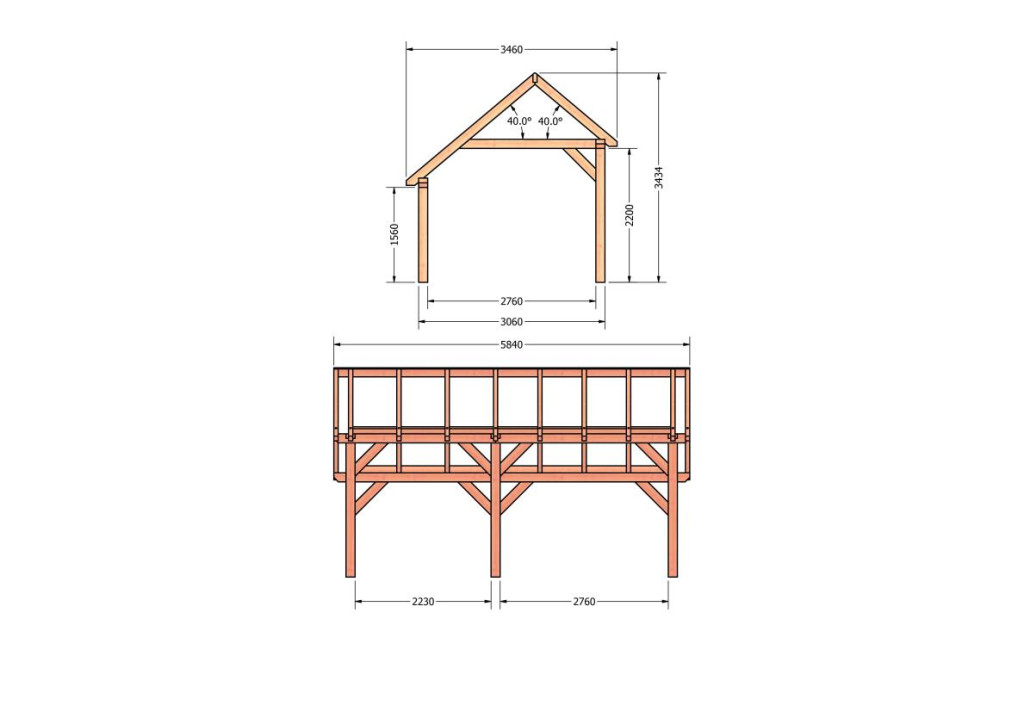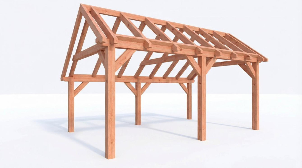 • Constructiepakket kapschuur | 5840x3460x3445mm | fijnbezaagd Douglas