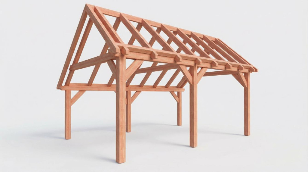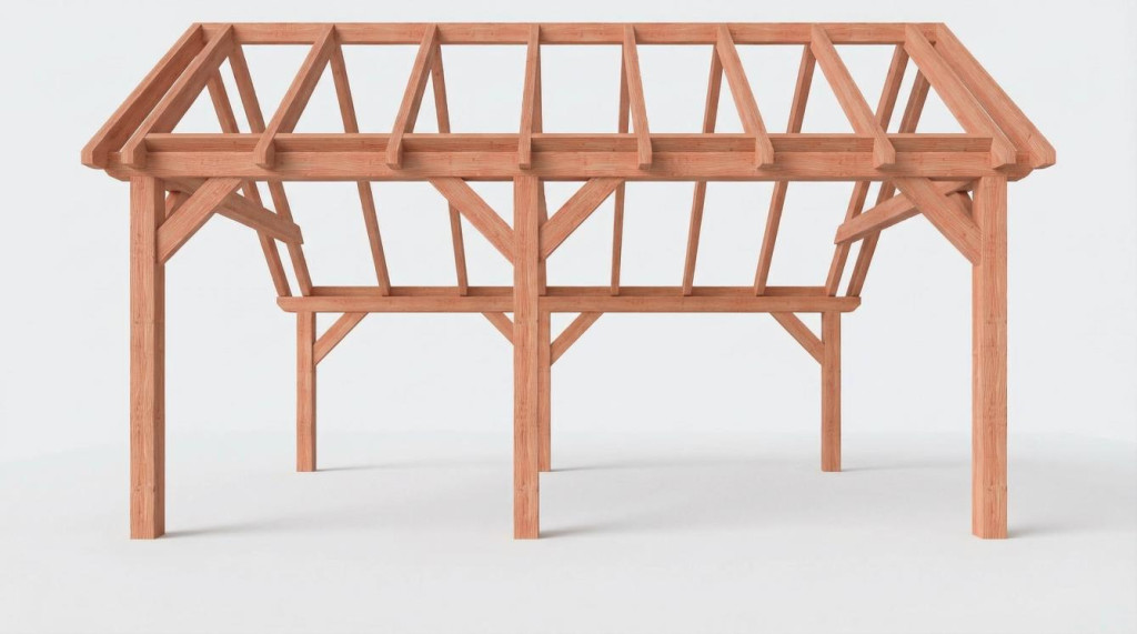 • Constructiepakket kapschuur | 5840x4105x3715mm | fijnbezaagd Douglas