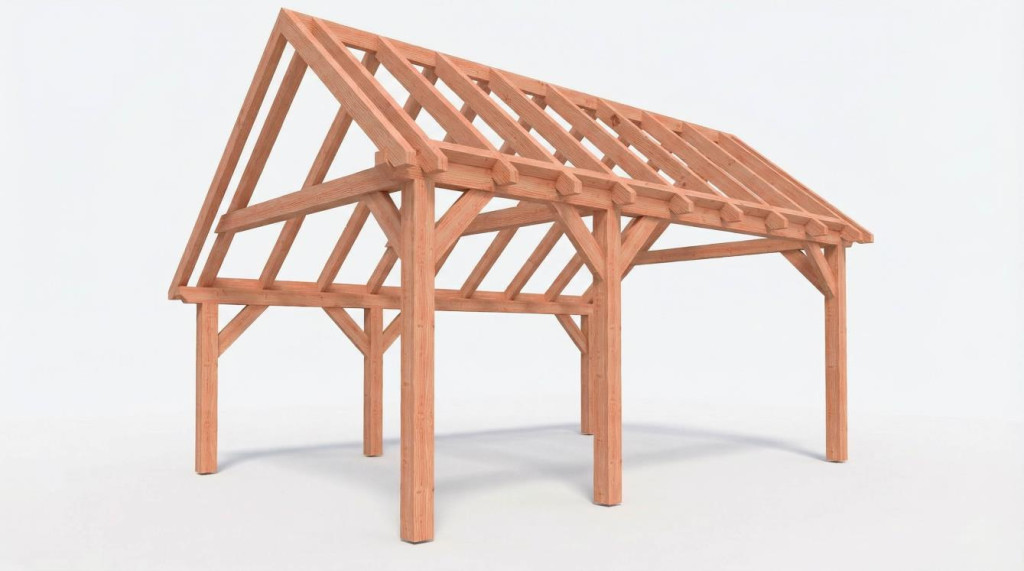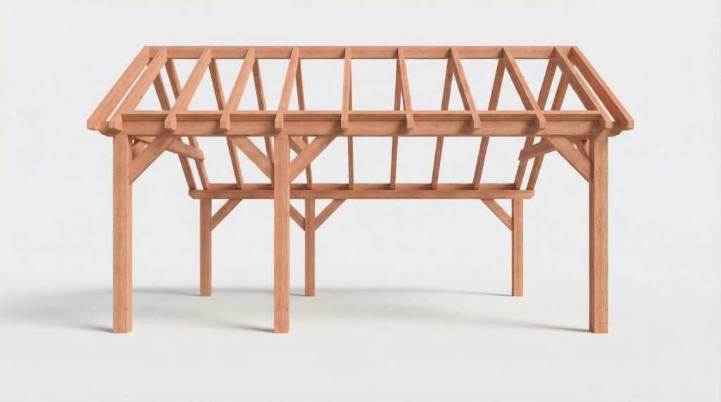• Constructiepakket kapschuur | 5885x4105x3715mm | fijnbezaagd Douglas