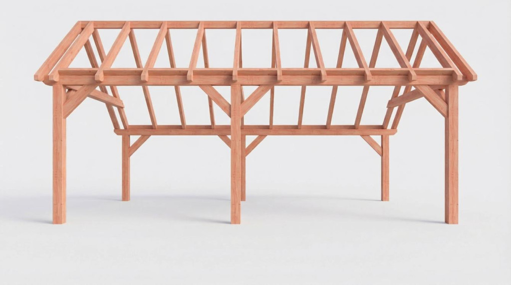 Constructiepakket kapschuur | 7015x4105x3715mm | fijnbezaagd Douglas