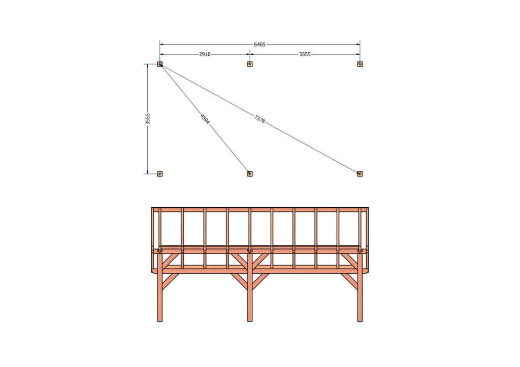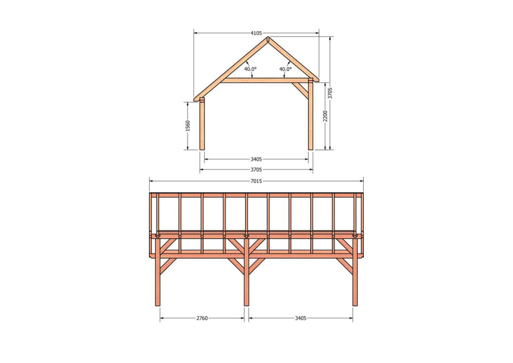 • Constructiepakket kapschuur | 7015x4105x3715mm | fijnbezaagd Douglas