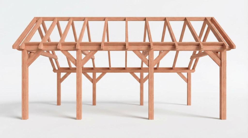 Constructiepakket kapschuur | 7090x4105x3715mm | fijnbezaagd Douglas