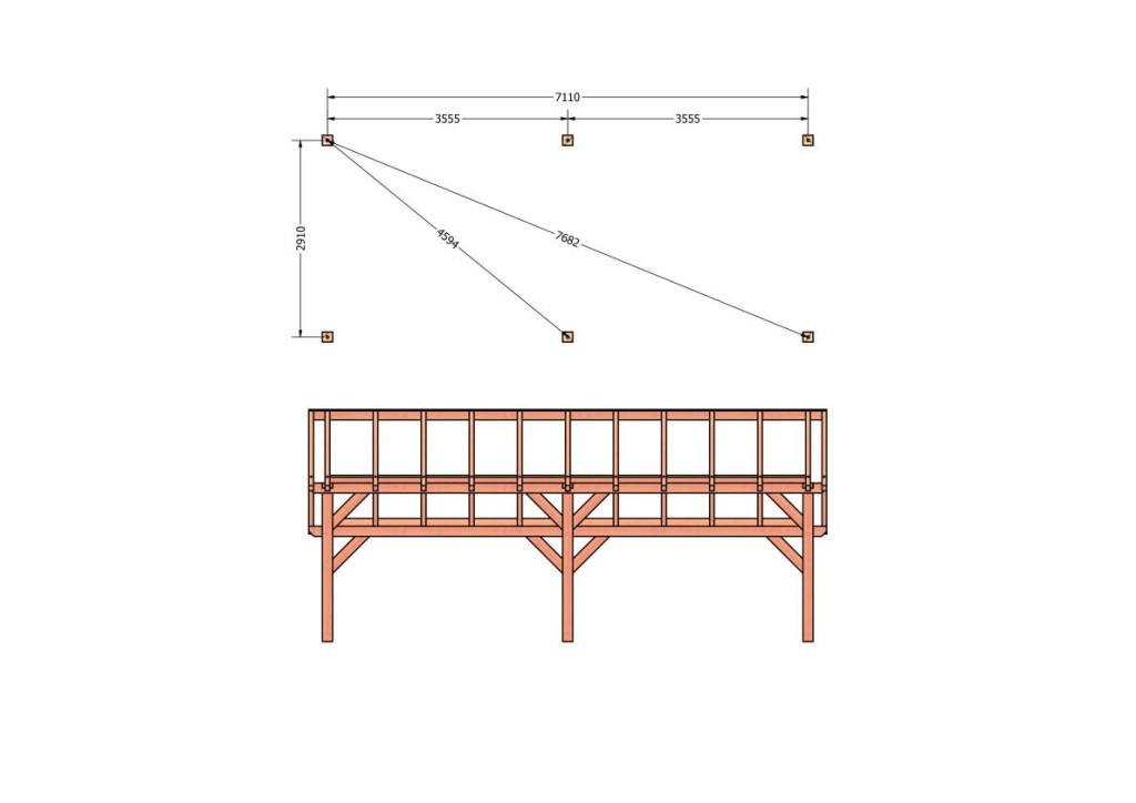 • Constructiepakket kapschuur | 7660x3460x3445mm | fijnbezaagd Douglas