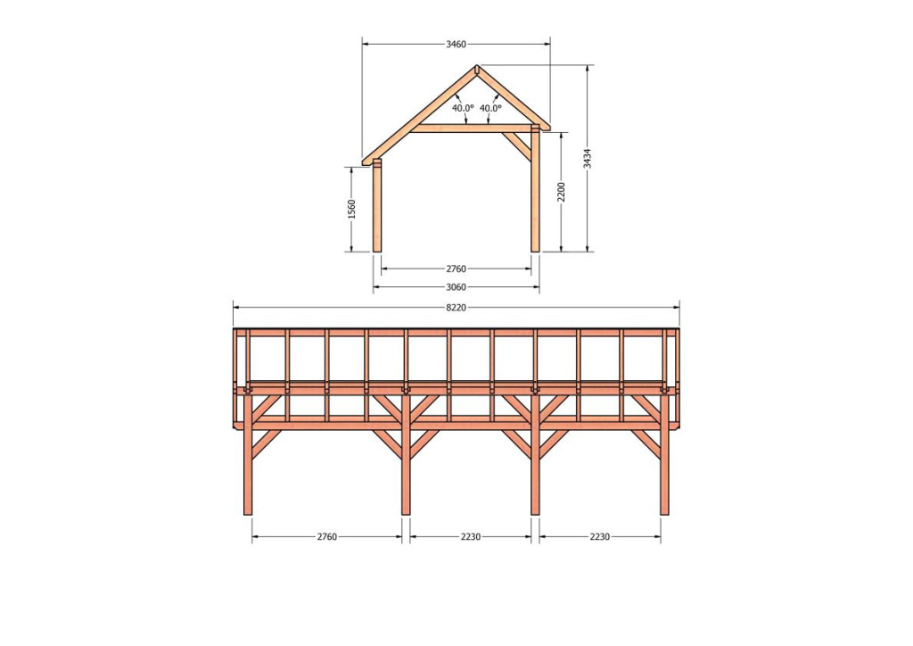 Constructiepakket kapschuur | 8220x3460x3445mm | fijnbezaagd Douglas