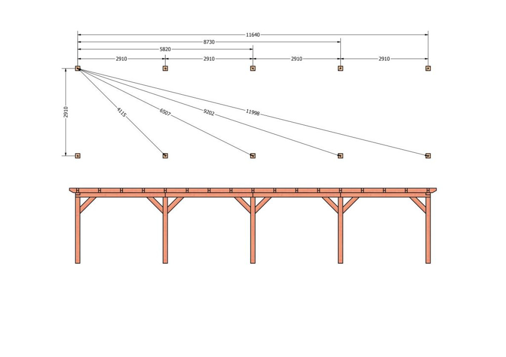 • Constructiepakket plat dak | 12190x3460x2500mm | fijnbezaagd Douglas