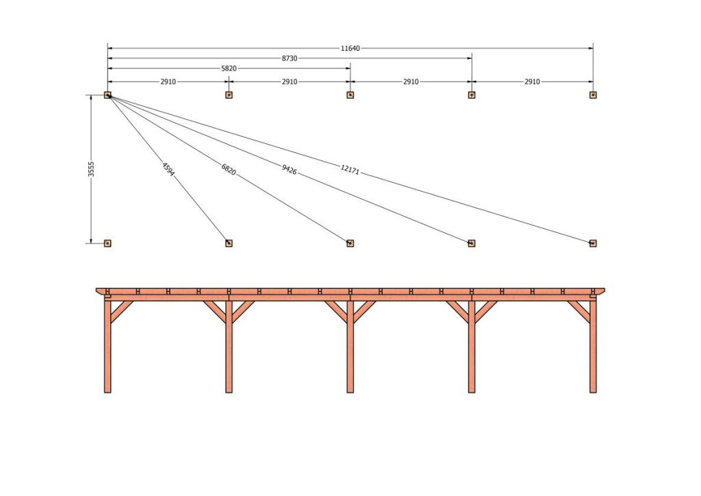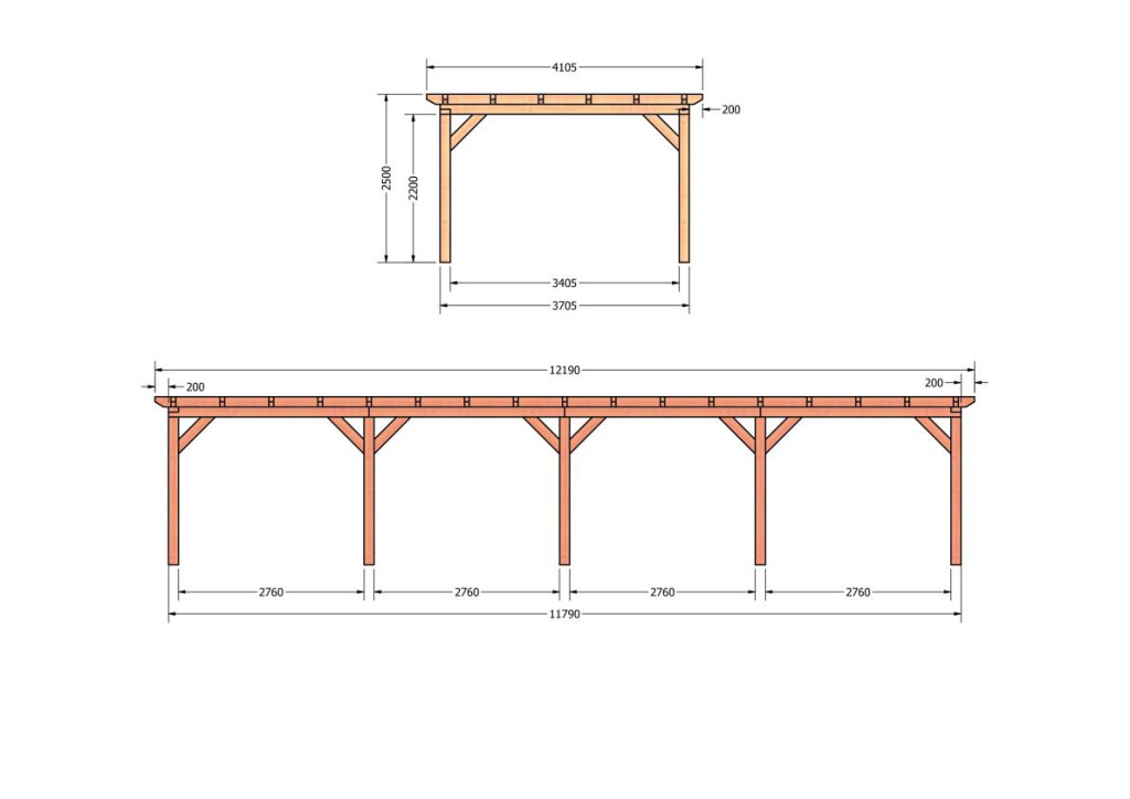 Constructiepakket plat dak | 12190x4105x2500mm | fijnbezaagd Douglas