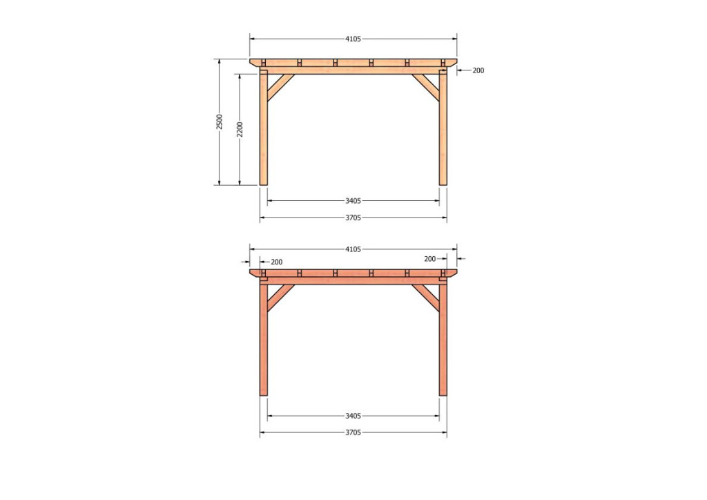 Constructiepakket plat dak | 4105x4105x2500mm | fijnbezaagd Douglas