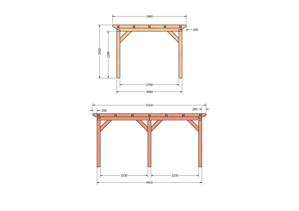 Constructiepakket plat dak | 5310x3460x2500mm | fijnbezaagd Douglas