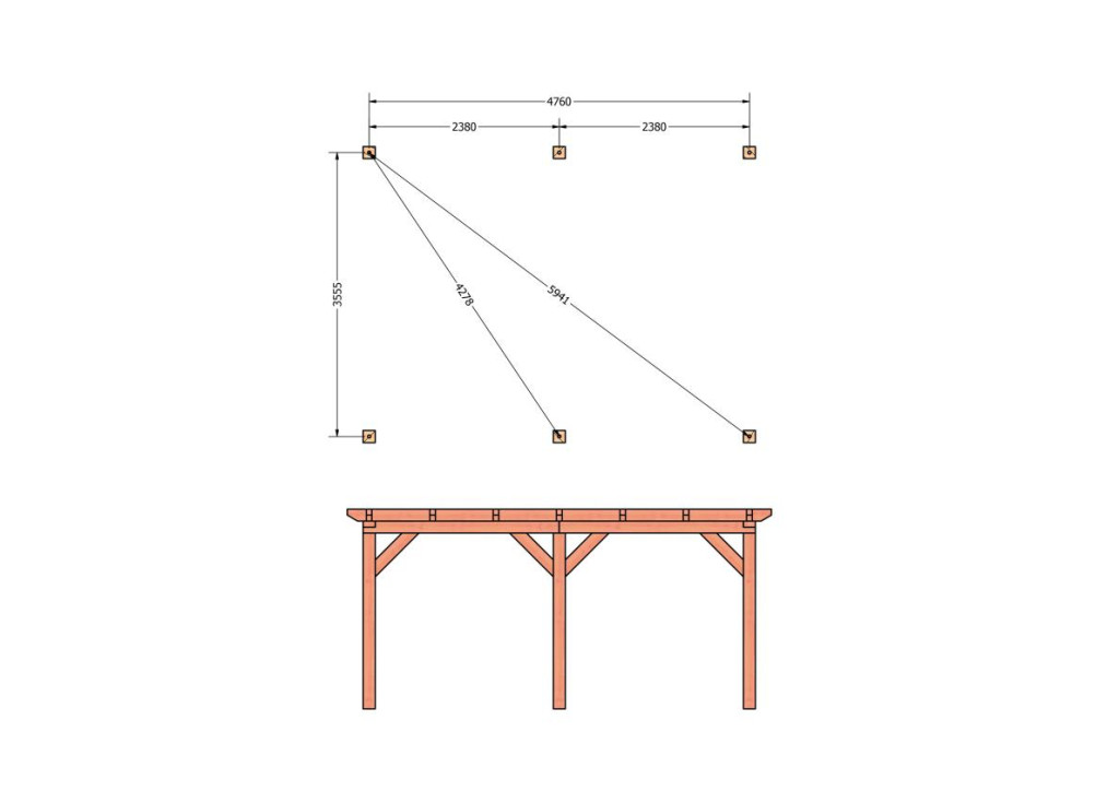 • Constructiepakket plat dak | 5310x4105x2500mm | fijnbezaagd Douglas