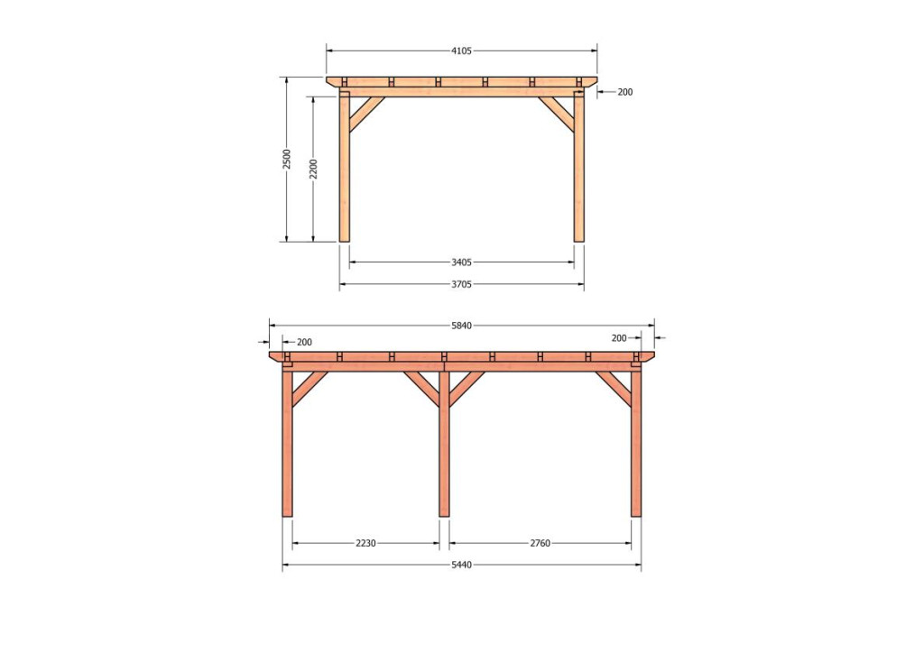 Constructiepakket plat dak | 5840x4105x2500mm | fijnbezaagd Douglas