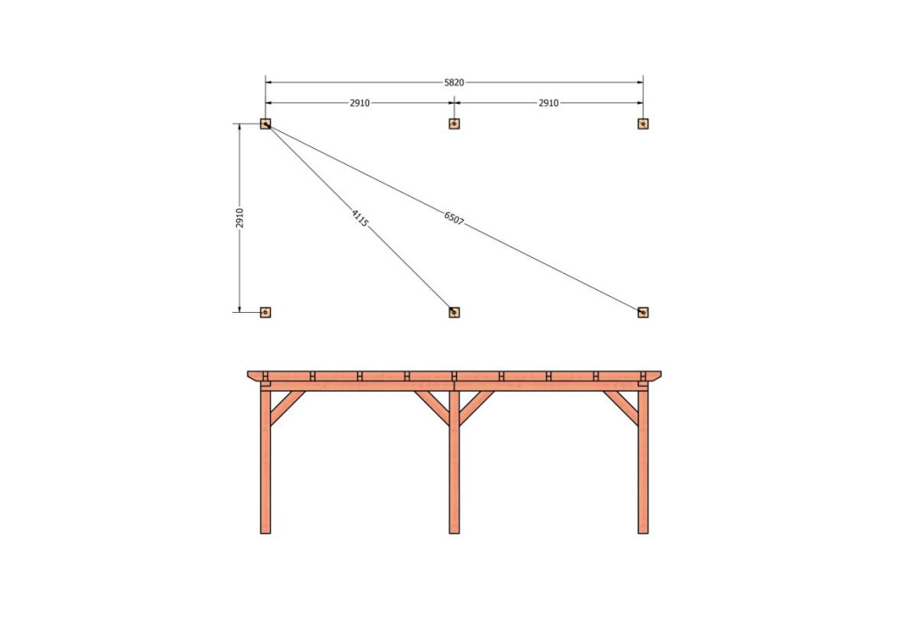 • Constructiepakket plat dak | 6370x3460x2500mm | fijnbezaagd Douglas