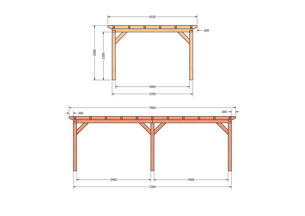 Constructiepakket plat dak | 7660x4105x2500mm | fijnbezaagd Douglas