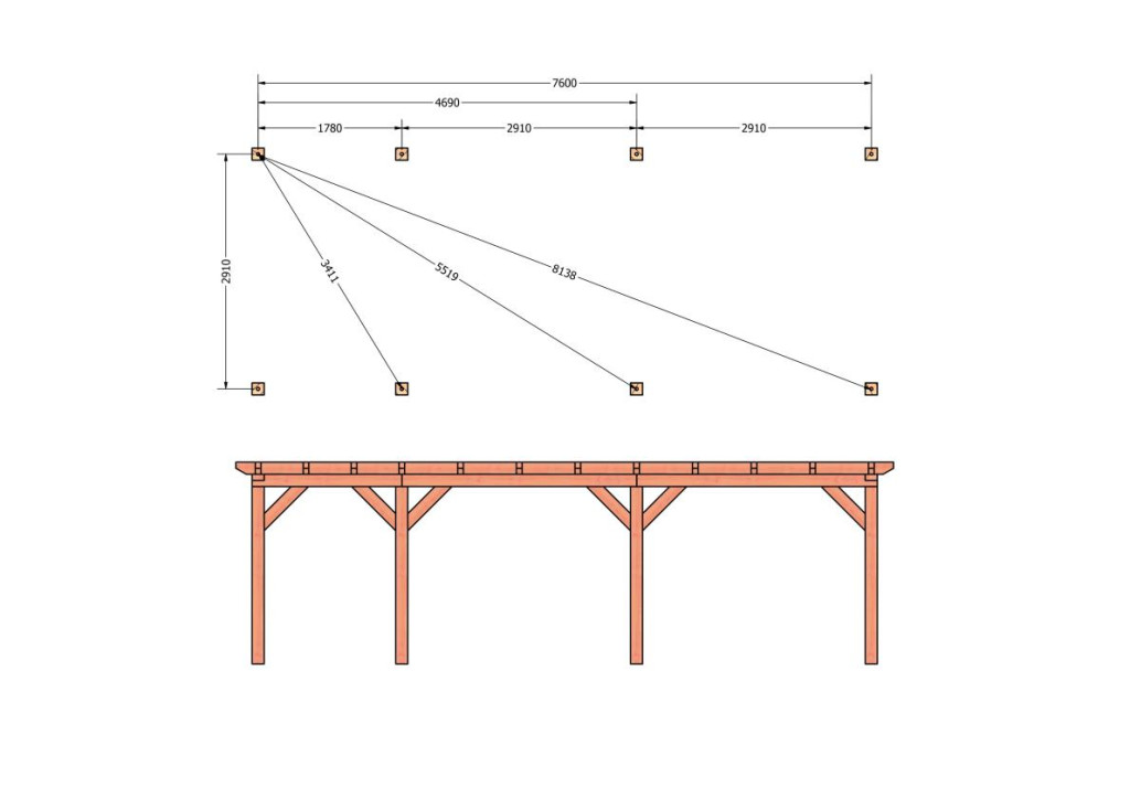 • Constructiepakket plat dak | 8150x3460x2500mm | fijnbezaagd Douglas