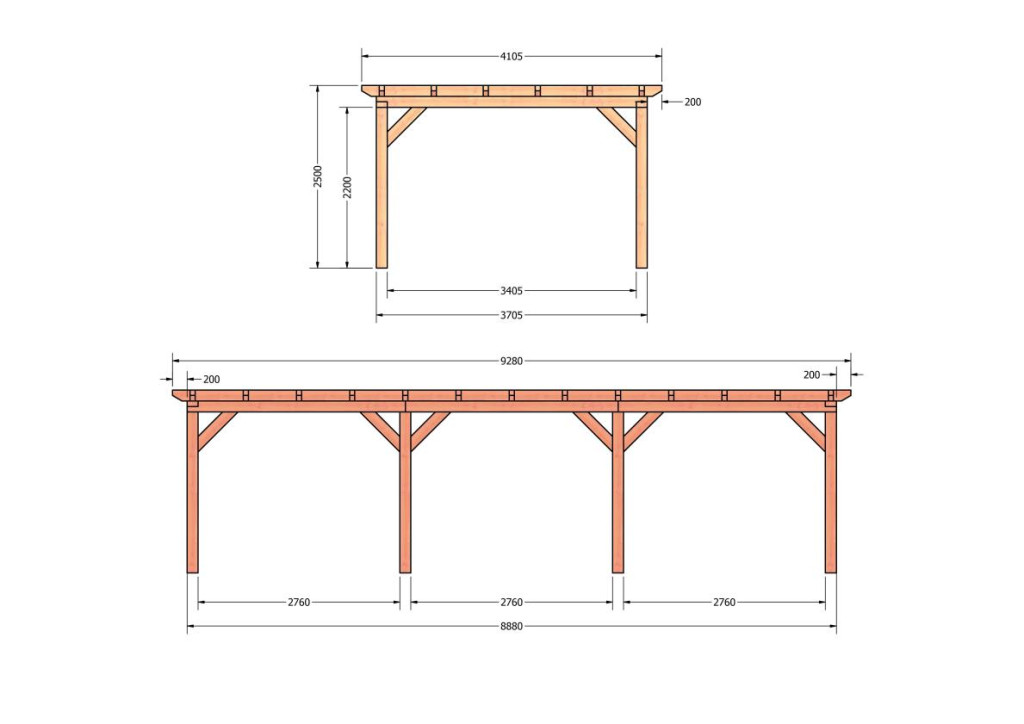 Constructiepakket plat dak | 9280x4105x2500mm | fijnbezaagd Douglas