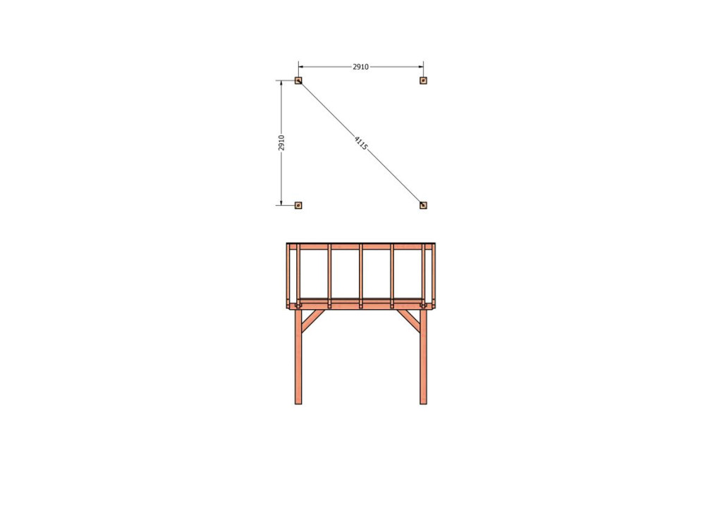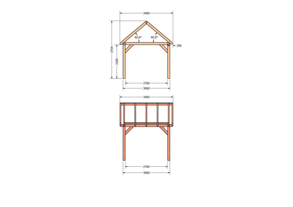 Constructiepakket zadeldak | 3460x3460x3760mm | fijnbezaagd Douglas