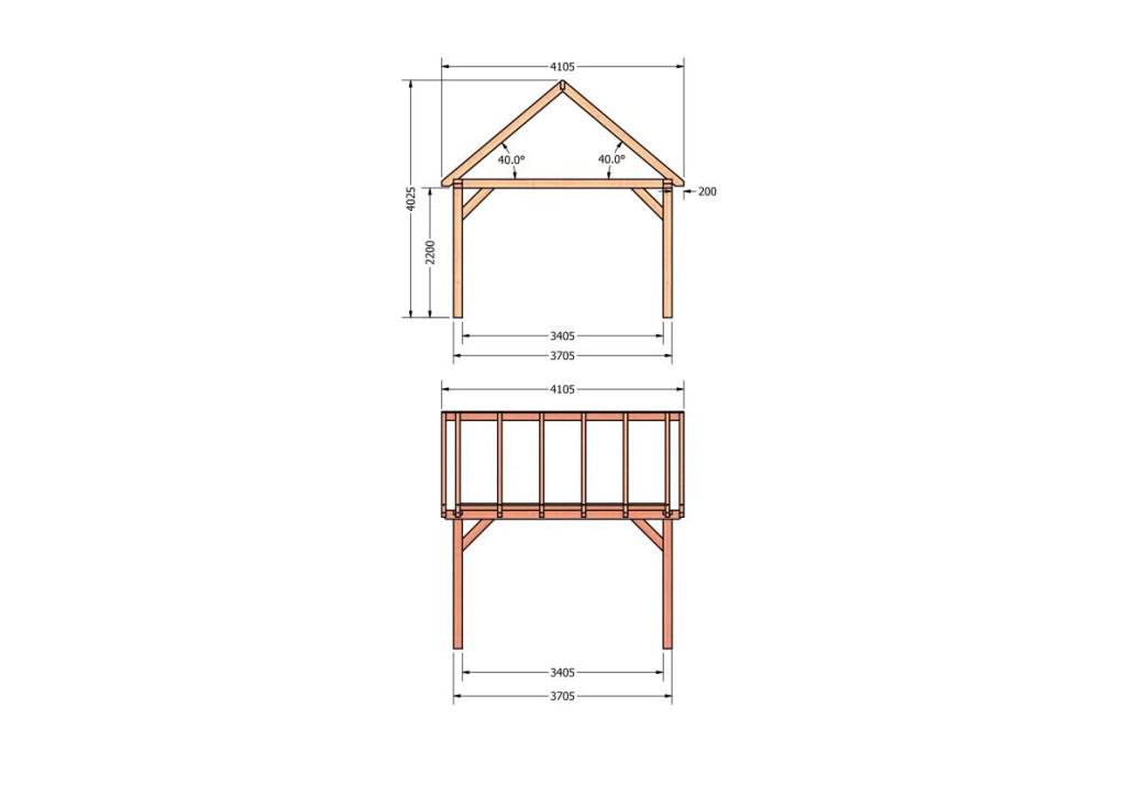 Constructiepakket zadeldak | 4105x4105x4030mm | fijnbezaagd Douglas