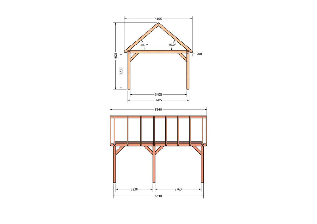 Constructiepakket zadeldak | 5840x4105x4030mm | fijnbezaagd Douglas