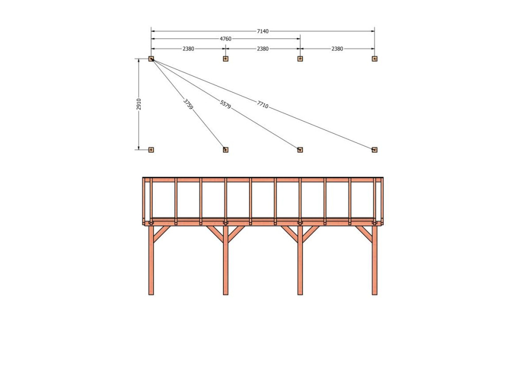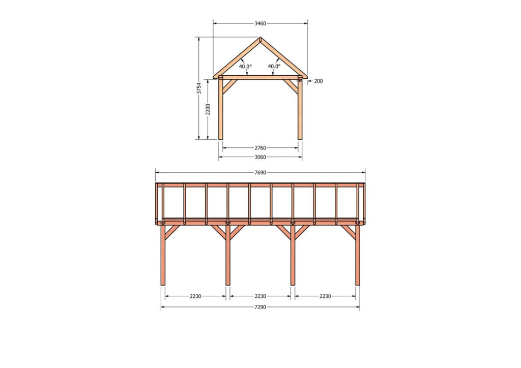 Constructiepakket zadeldak | 7690x3460x3760mm | fijnbezaagd Douglas