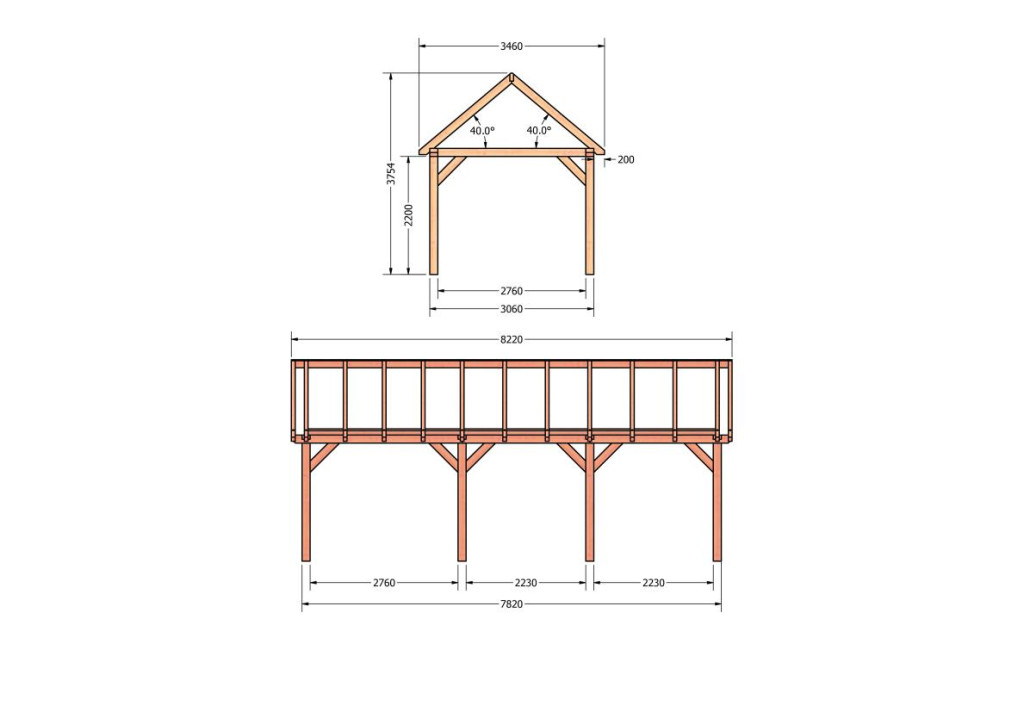 Constructiepakket zadeldak | 8220x3460x3760mm | fijnbezaagd Douglas